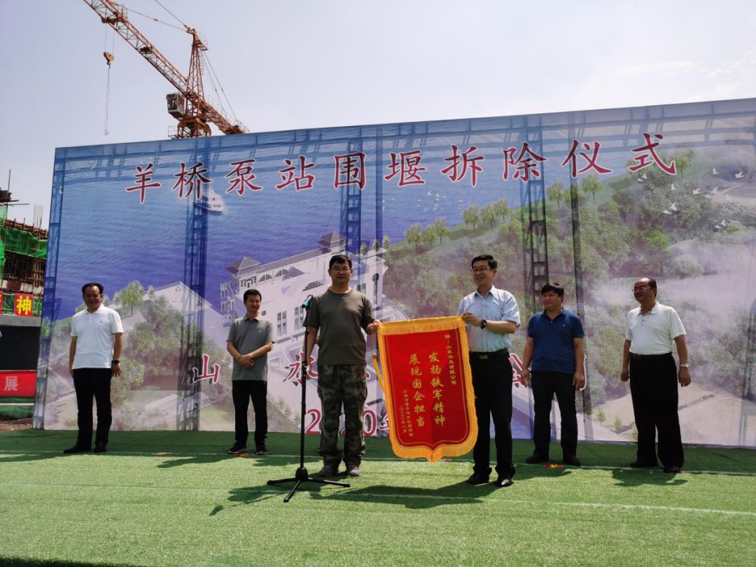 羊桥泵站闸门完全具备了启闭功能,水泵具备了排水功能,围堰的拆除标志着羊桥泵站的正式启用,为今年防汛防潮排涝提供了工程保障,对保证羊口镇人民生命财产安全具有重要意义。仪式上,王法顺部长代表工程指挥部给米兰体育在线网站_米兰体育(中国) 授予了锦旗,表达了对米兰体育在线网站_米兰体育(中国) 领导及参建职工的感谢,赞扬了水总人自强不息、勇于超越的铁军精神。