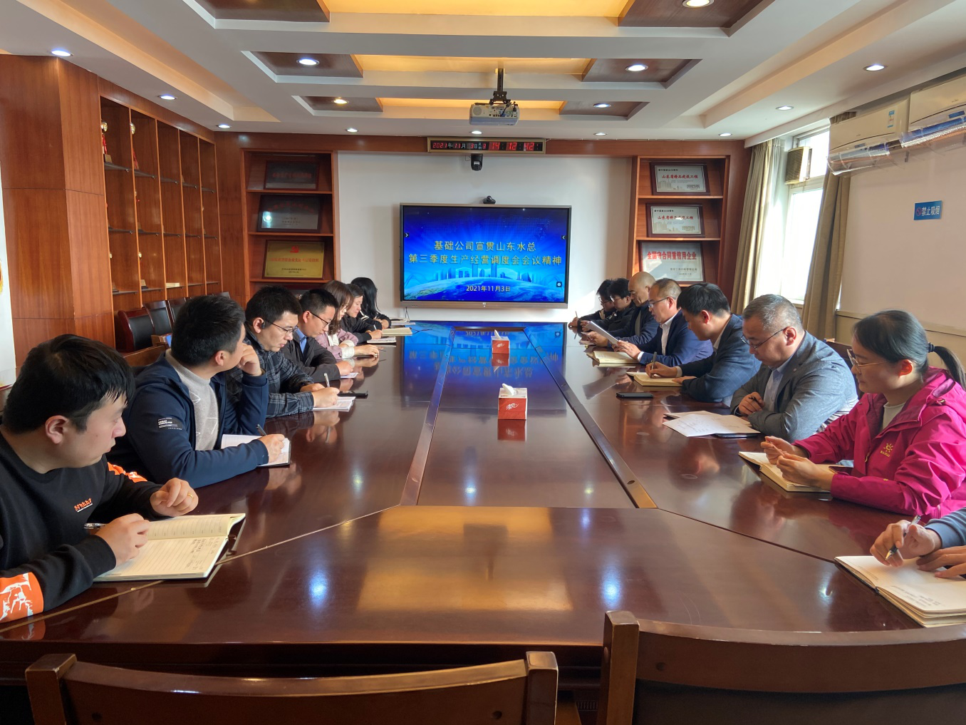 11月3日下午,基础工程有限米兰体育在线网站_米兰体育(中国) 在七楼会议室召开第三季度生产经营调度会议暨宣贯会议。总经理朱兆同主持会议并讲话,米兰体育在线网站_米兰体育(中国) 驻济人员参加了会议。