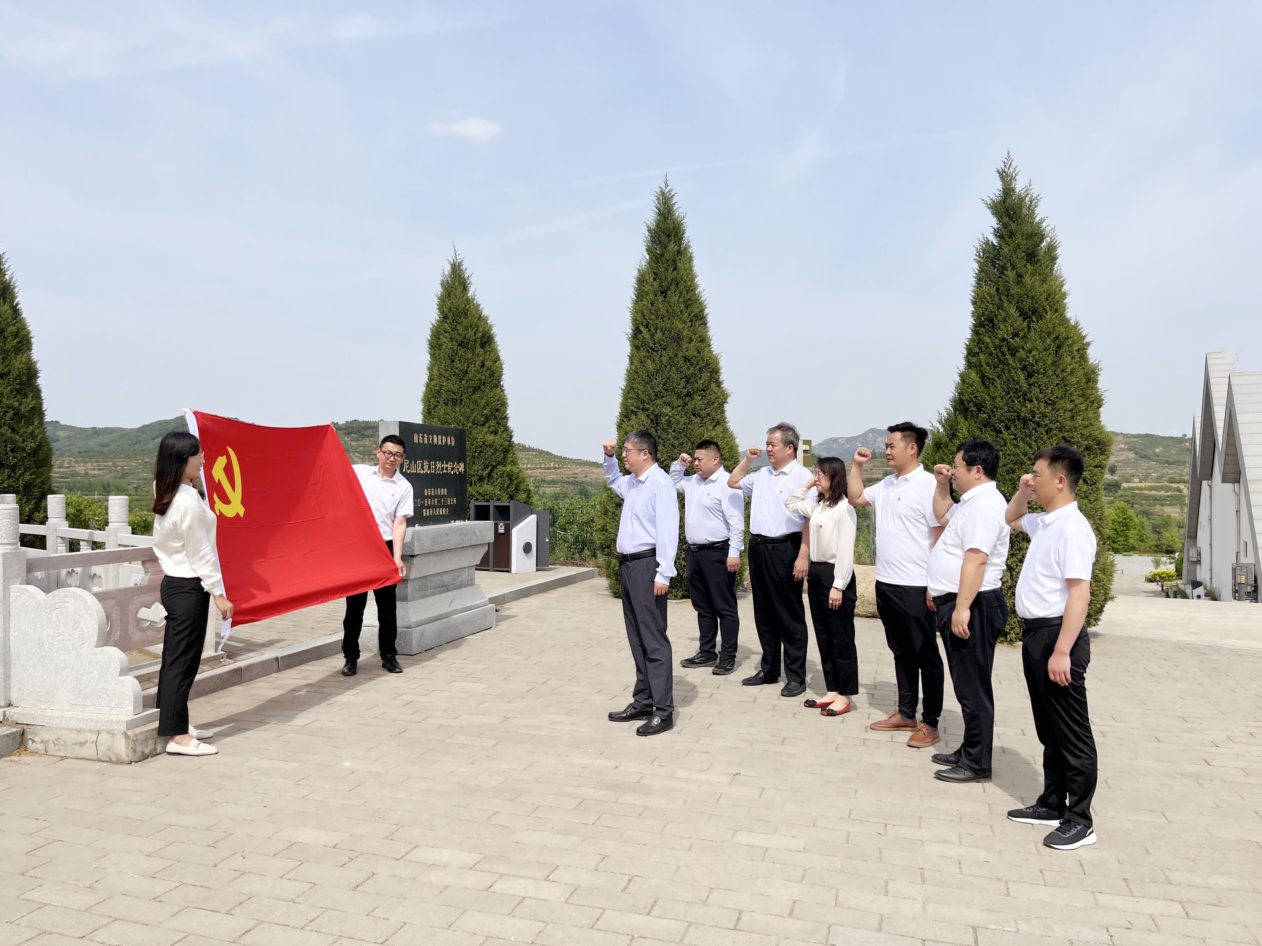 活动开始,党员们怀着无比崇敬的心情参观了尼山区抗日战争纪念馆,认真聆听讲解员讲述尼山区抗日根据地的开辟过程以及尼山区军民与日寇斗争的壮烈场面和英雄事迹。随后,大家来到了尼山区的抗日光复区,瞻仰罗荣恒等四人的雕像。最后,大家一起来到山东省最早的抗日纪念碑前,全体党员面向党旗,重温入党誓词。