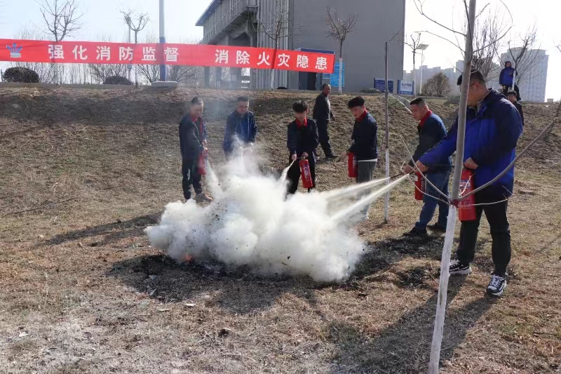 在演练开始前,聊城安防项目负责人与建设单位领导讲解了消防安全常识、火灾预防措施及消防器材使用方法等相关知识,并现场示范,详细向参训人员讲解灭火方法。随后项目部成员与建设单位人员依次上前操作,练习灭火技能,提高消防自救实操能力。演练活动达到了“思想上受警醒、认识上明底线、行动上知敬畏”的目的,起到了警钟长鸣的宣传教育作用,营造了人人讲消防、齐心促安全的良好氛围。