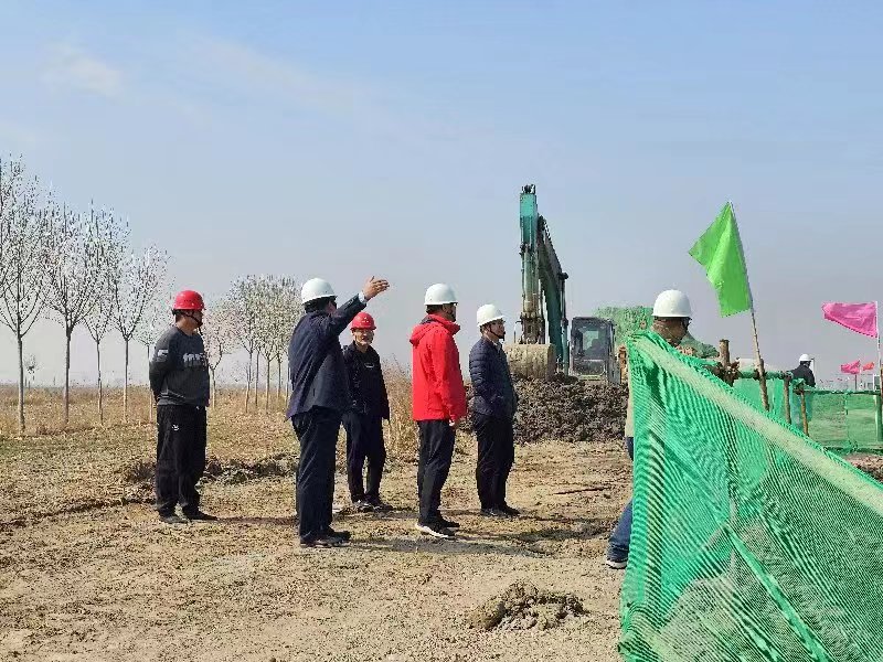 3月22日,米兰体育在线网站_米兰体育(中国) 党委委员、副总经理袁英杰,安全总监郭法文及工程管理部、安全管理部相关人员一行到第五分米兰体育在线网站_米兰体育(中国) 承建的无棣县鲁北高新区园区基础设施提升工程项目检查指导工作。