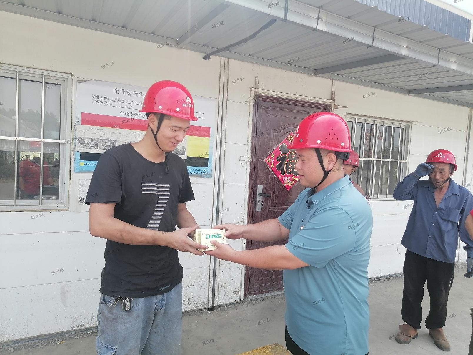 水工机械米兰体育在线网站_米兰体育(中国) 一直大力倡导“以人为本”的管理理念,高度重视夏季农民工防暑降温工作,并将此作为“我为群众办实事”系列服务活动的重要工作,形成关心关爱农民工的工作常态,展现国企的社会担当。