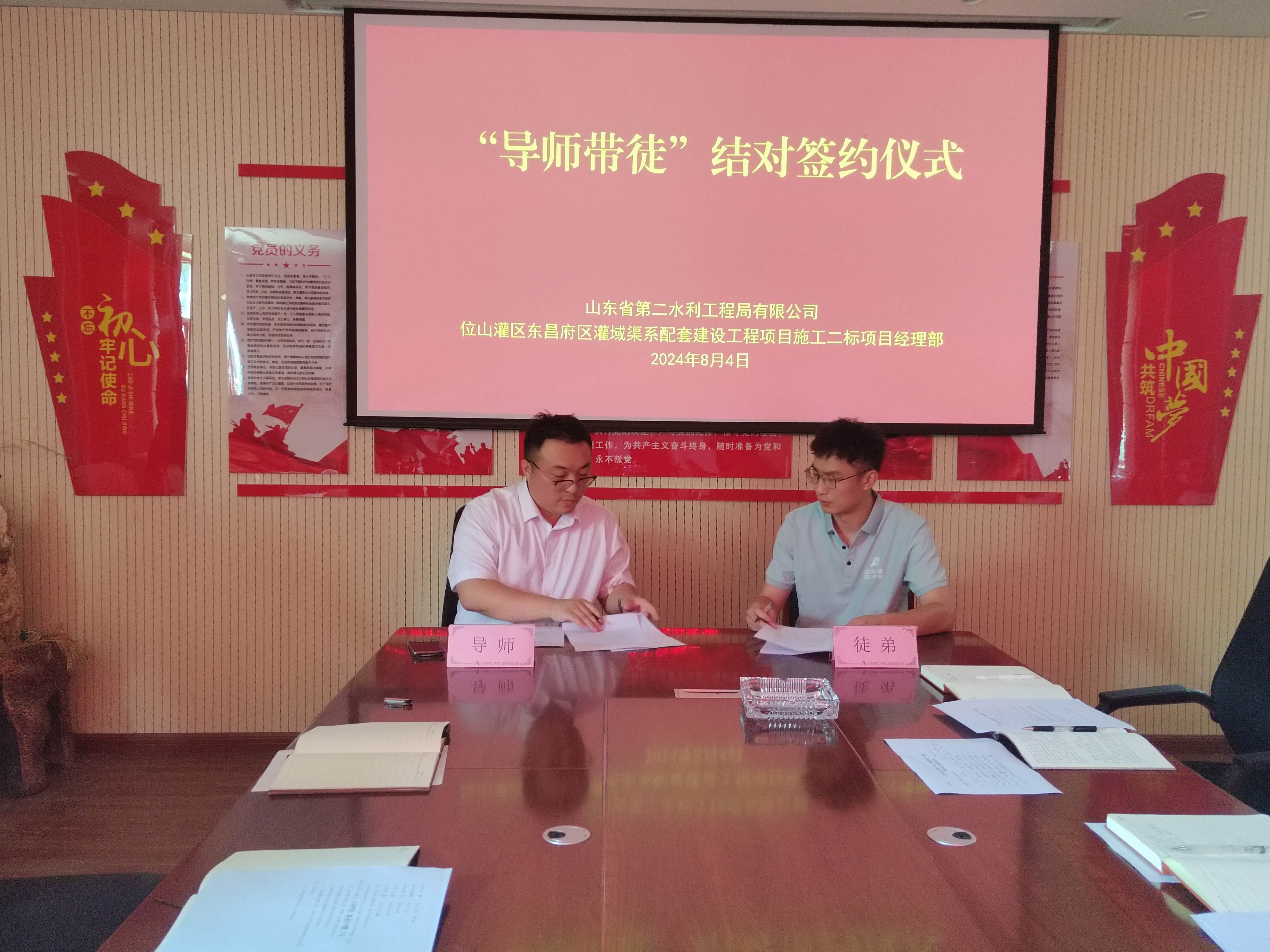 “师徒结对 薪火相继”- 二局有限米兰体育在线网站_米兰体育(中国) 位山灌区项目部举行“导师带徒”结对签约仪式