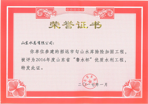 米兰体育在线网站_米兰体育(中国) “招远市勾山水库除险加固工程”等八项工程被评为2016年度山东省“鲁水杯”优质水利工程