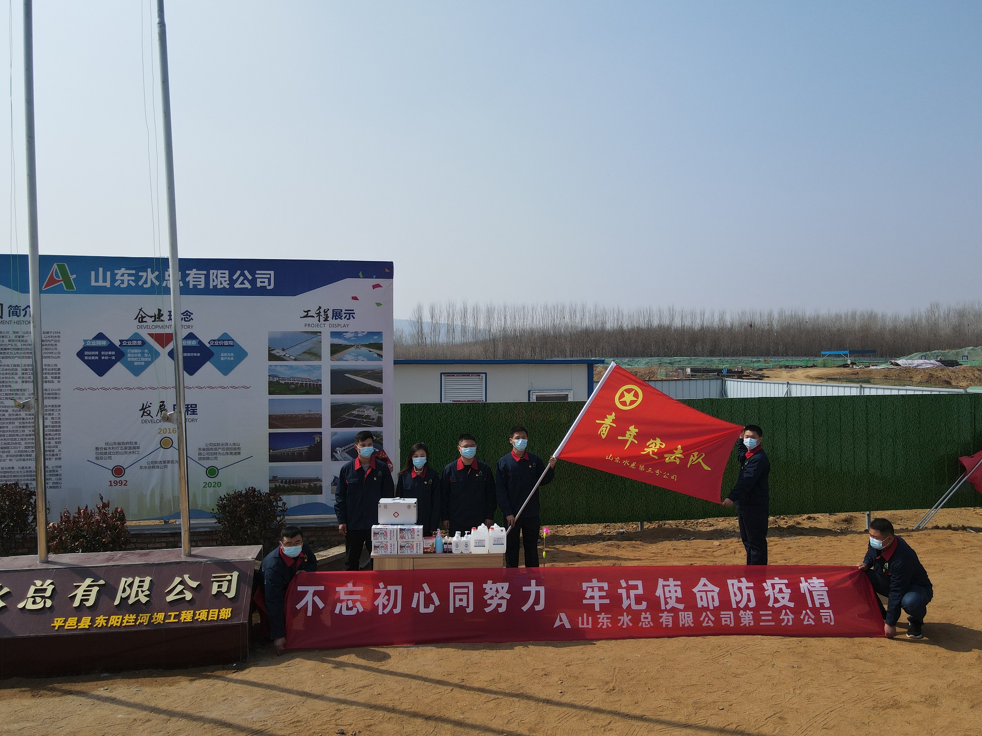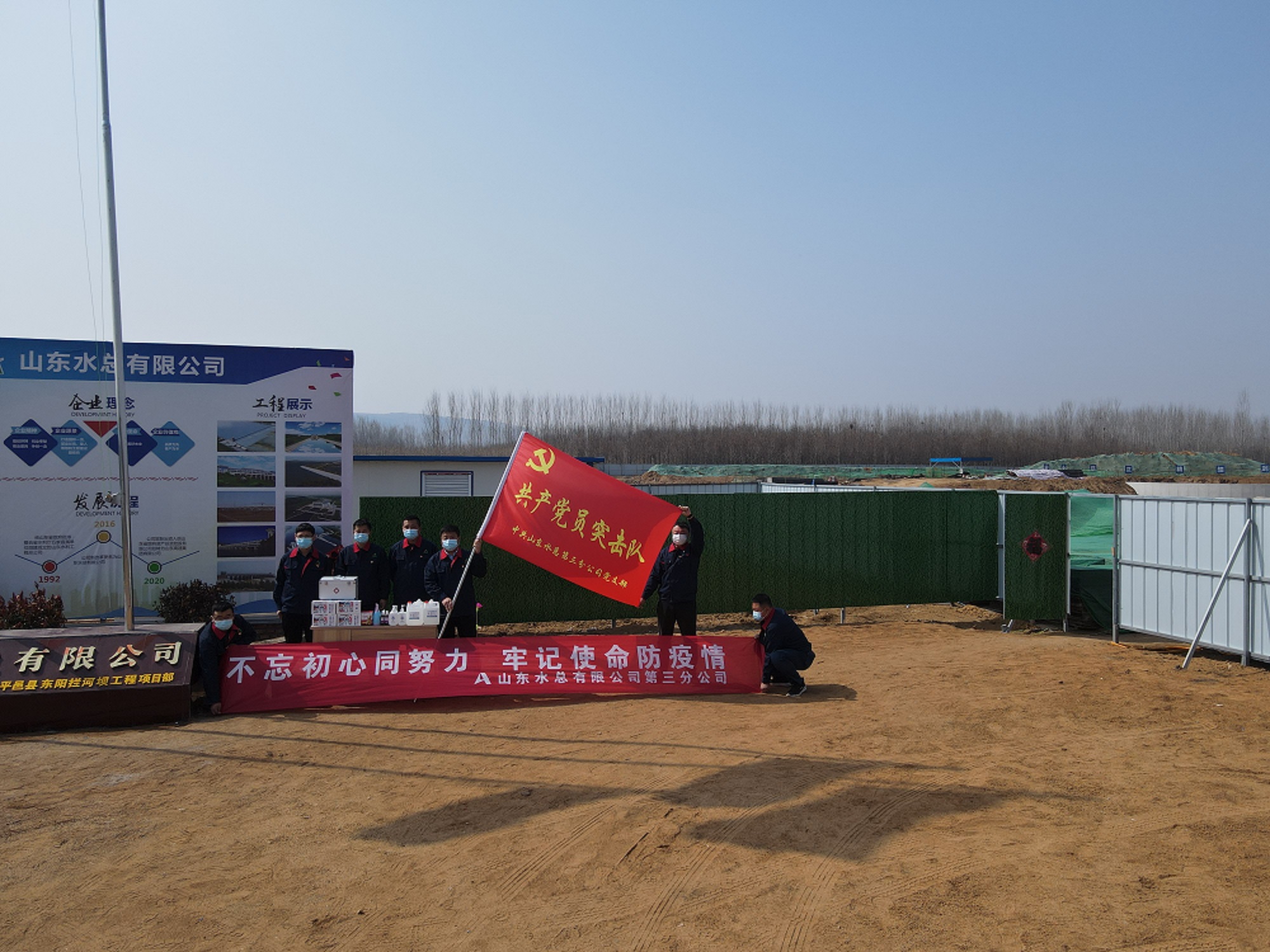 临沂地区东阳拦河坝、重兴拦河闸与平邑兴水河项目部党员联合行动,划分责任区域,积极组织项目全员进行核酸检测,统一采购发放防疫物资、建立个人防疫台账。在保证人员健康安全的前提下,高效开展生产工作,在党员干部的带领下,青年职工们积极响应,勇于担当、甘于奉献,贡献着青春力量。