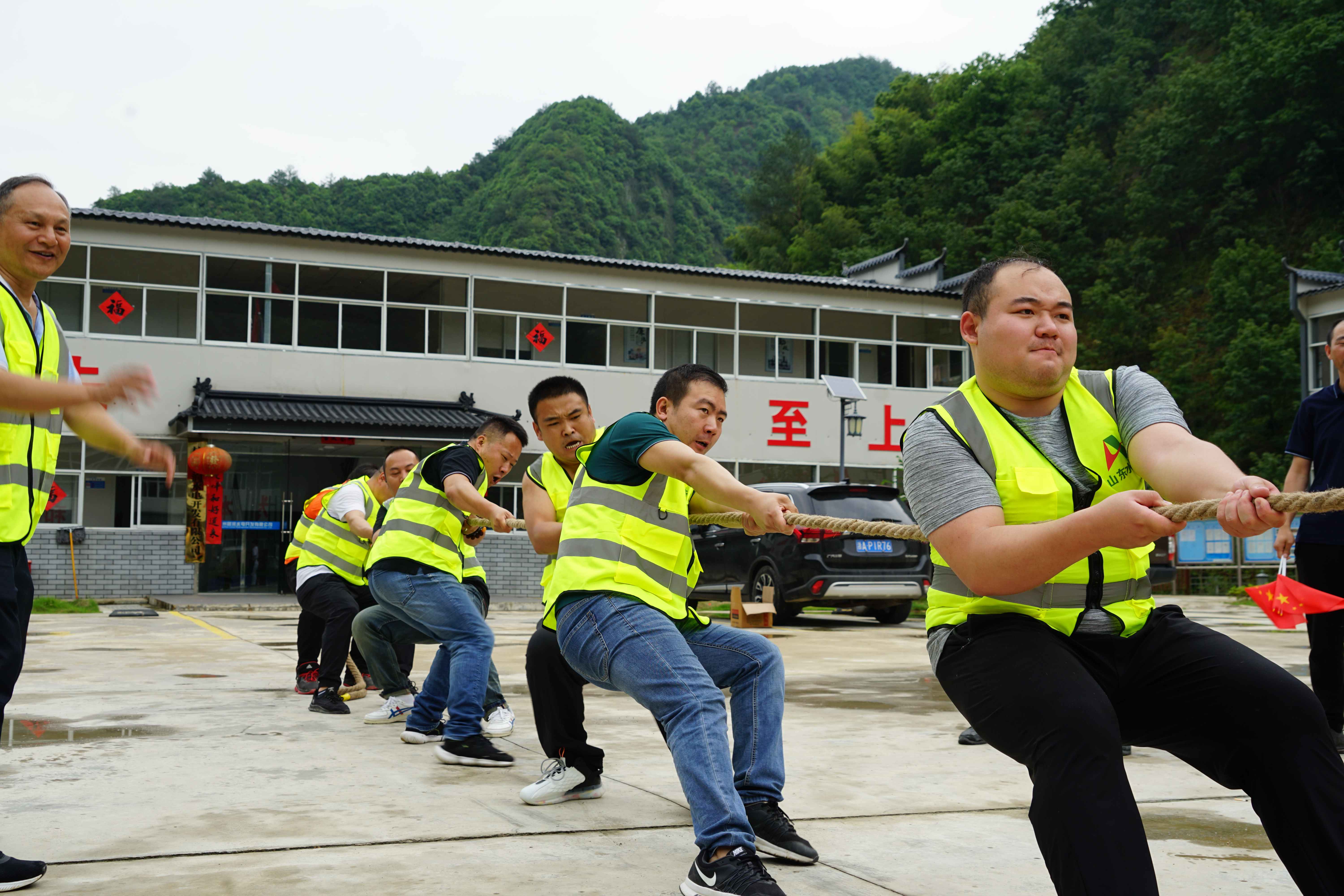 双溪口水库工程指挥部、杭州鲁润米兰体育在线网站_米兰体育(中国) 和监理部组成蓝队,总承包项目部组成红队,施工班组组成黄队。哨声一响,选手们立即投入到激烈的比赛中,个个精神抖擞、全力以赴,周围观众和工作人员使出浑身解数呐喊助威,赛场气氛热闹非凡、紧张激烈,加油声、欢呼声此起彼伏。最后,经过8轮的比拼,蓝队获得本次拔河比赛的冠军。