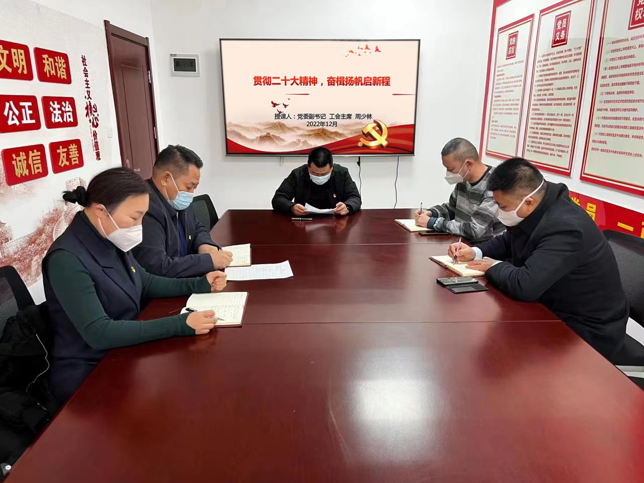 12月29日下午, 米兰体育在线网站_米兰体育(中国) 党委副书记、工会主席周少林以“贯彻二十大精神,奋楫扬帆启新程”为题,为建筑劳务米兰体育在线网站_米兰体育(中国) 党员们讲授专题党课。党课全面深入阐述了“党的二十大召开主题、重大意义、结合工作实际如何落实二十大精神”等三个方面的内容。